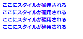 例えば、以下のように記述することで、HTMLのdiv要素内にあるp要素にスタイルを適用することができま