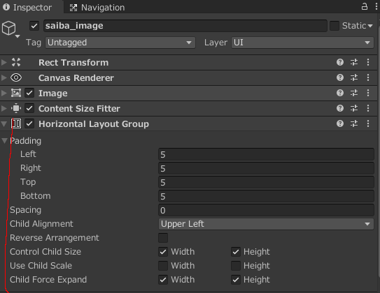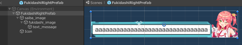 さらに、”FukidashiRightPrefab”配下に、Imageオブジェクトを配置することで、”Horizontal Layout Group”によって自動で右側に配置されます。
