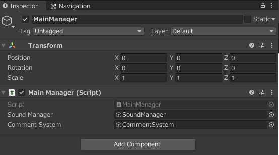 最後に、全体の管理を行うMainManagerを実装し、コメントシステムとサウンドマネージャーを連携させます。