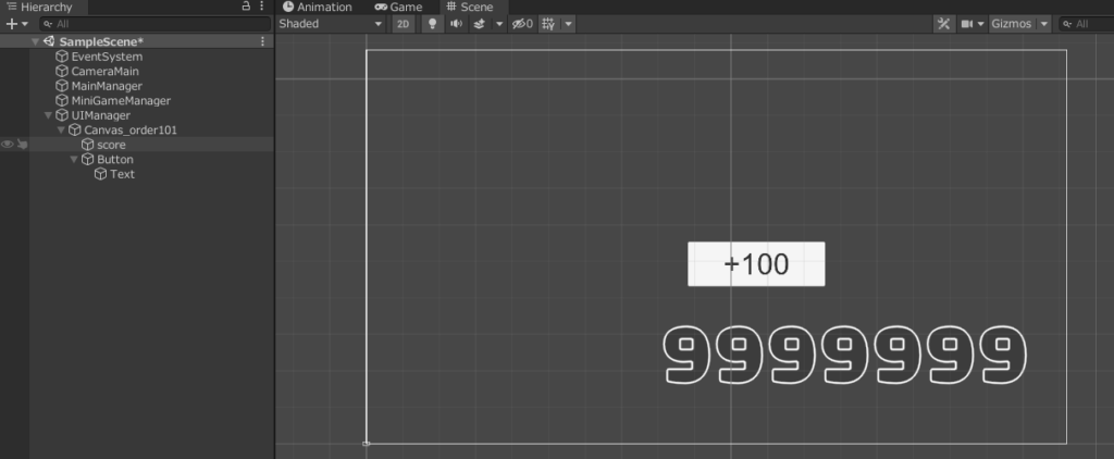 MiniGameManagerスクリプトをプロジェクトに追加し、スコアが増加するタイミングでAddScore()メソッドを呼び出すだけで、数値が滑らかに増加するアニメーションを簡単に実装できます。